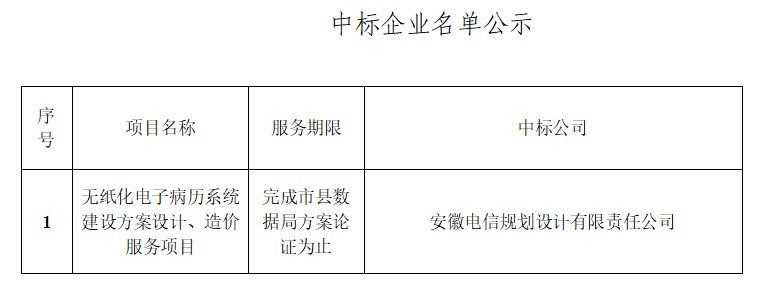 | 名称: | 蒙城县第二人民医院无纸化电子病历系统建设方案采购议价中标企业名单公示 |