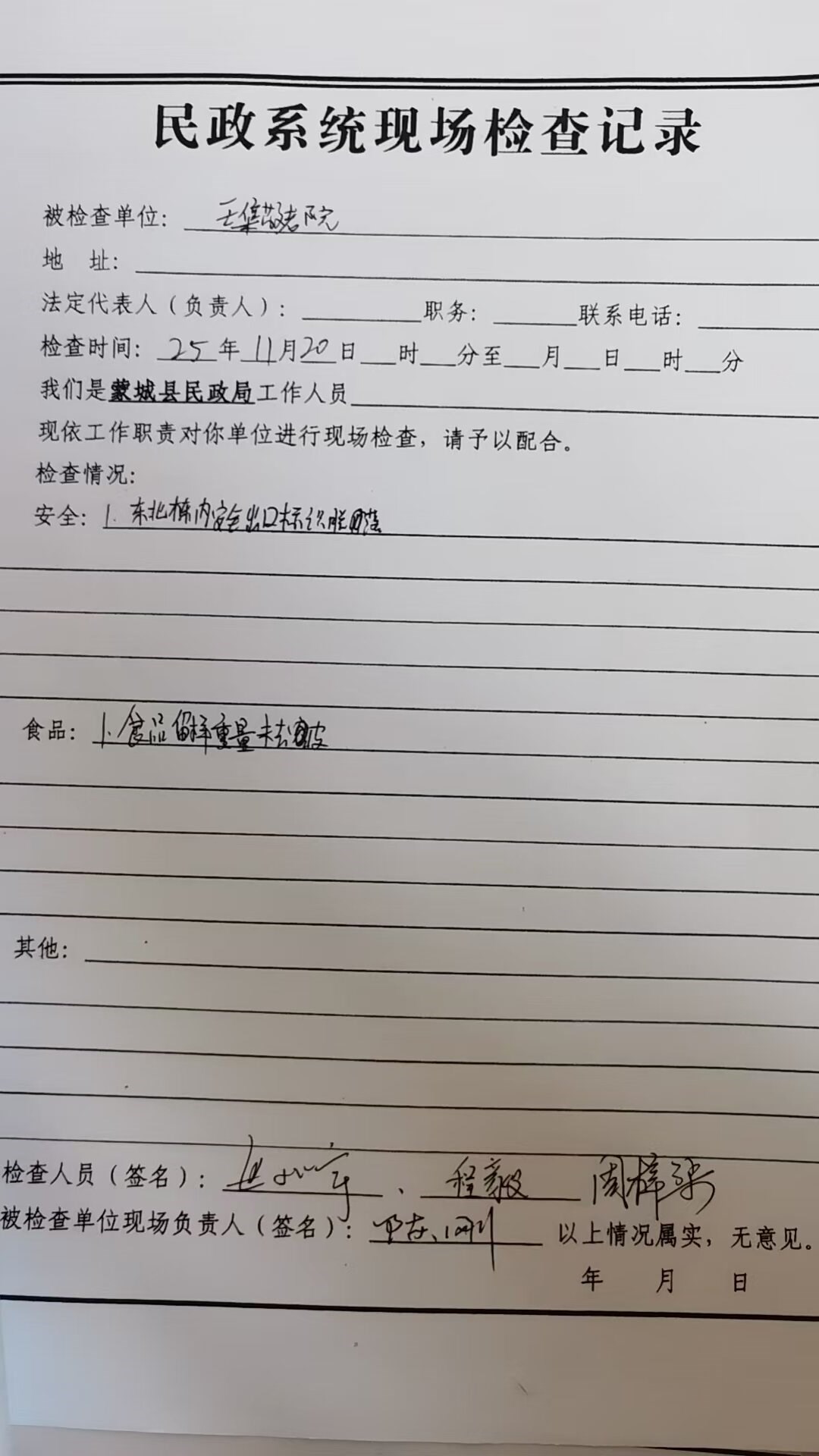 | 名称: | 蒙城县2025年11月养老领域检查记录及整改报告 |