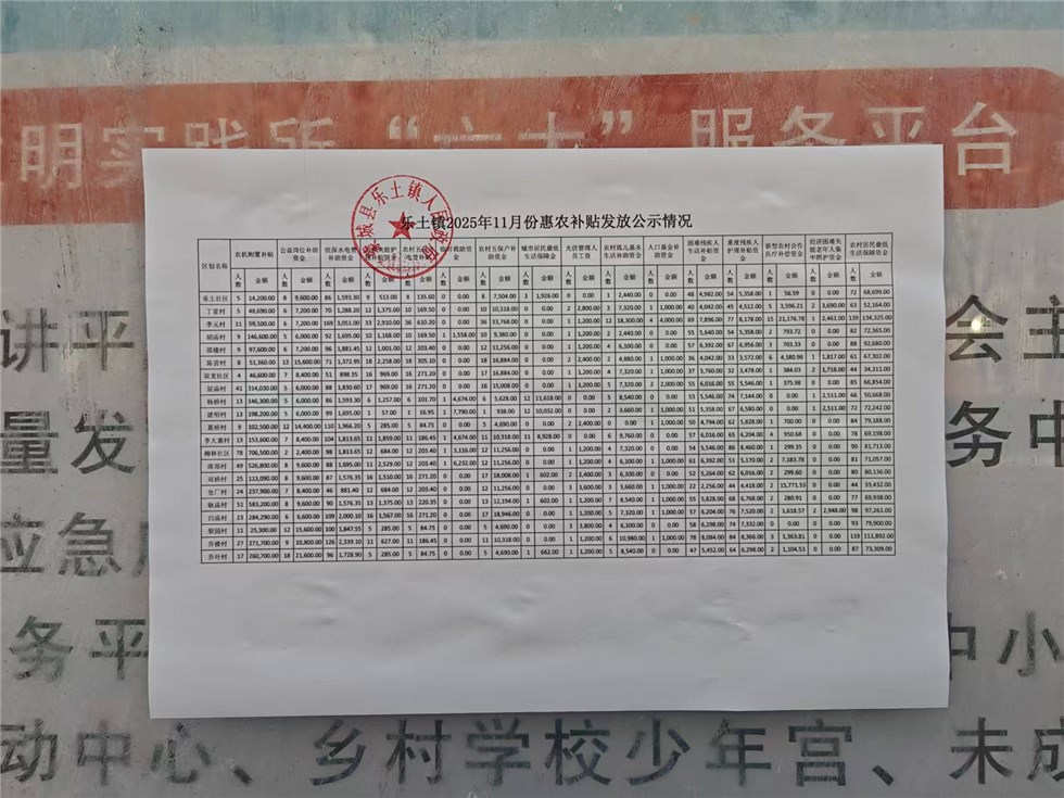 | 名称: | 乐土镇2025年11月份惠农补贴发放公示情况 |