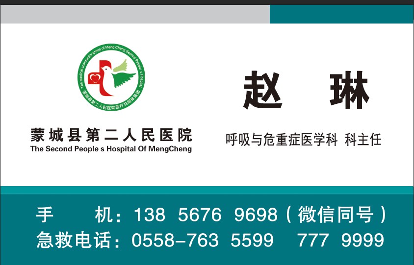 | 名称: | 蒙城县第二人民医院人员识别(赵琳名片) | 文号: | 无 |