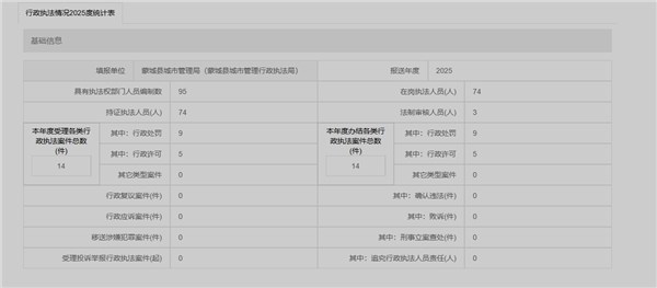 | 名称: | 2025年度行政执法年报统计表 |