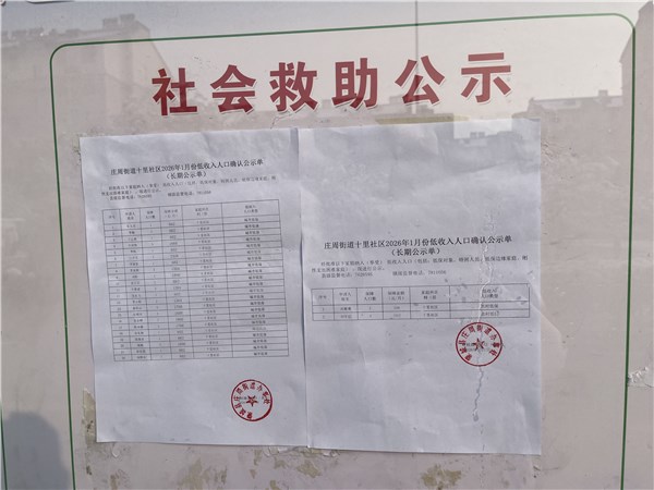 | 名称: | 庄周街道十里社区2026年1月份惠民惠农补贴资金发放公示情况 | 文号: | 无 |