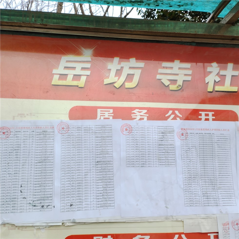 | 名称: | 岳坊镇岳坊寺社区2026年1月份惠民惠农补贴资金发放公示 |