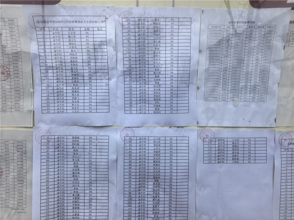 | 名称: | 岳坊镇金牛村2026年2月份惠民惠农补贴资金发放公示 |