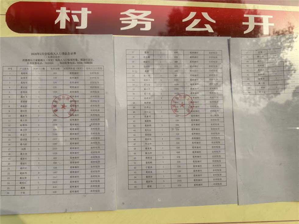| 名称: | 岳坊镇葛寒寨2026年2月份惠民惠农补贴资金发放公示 |