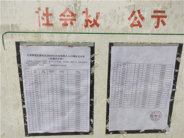 | 名称: | 庄周街道后娄社区2026年3月份惠民惠农补贴资金发放公示情况 |