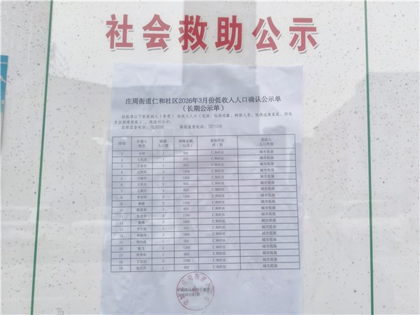 | 名称: | 庄周街道仁和社区2026年3月份惠民惠农补贴资金发放公示情况 | 文号: | 无 |