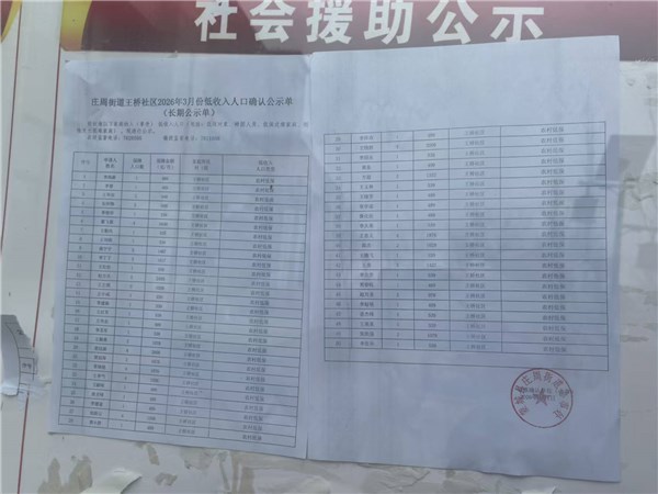 | 名称: | 庄周街道王桥社区2026年3月份惠民惠农补贴资金发放公示情况 |