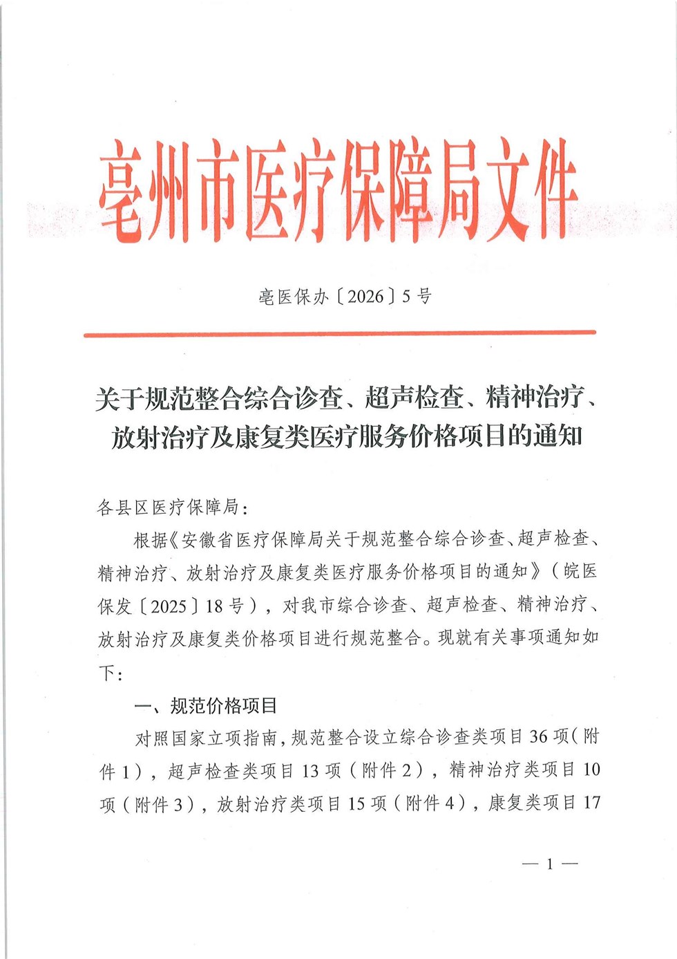 | 名称: | 关于规范整合综合诊察、超声检查、精神治疗、放射治疗及康复类医疗服务价格项目的通知 |